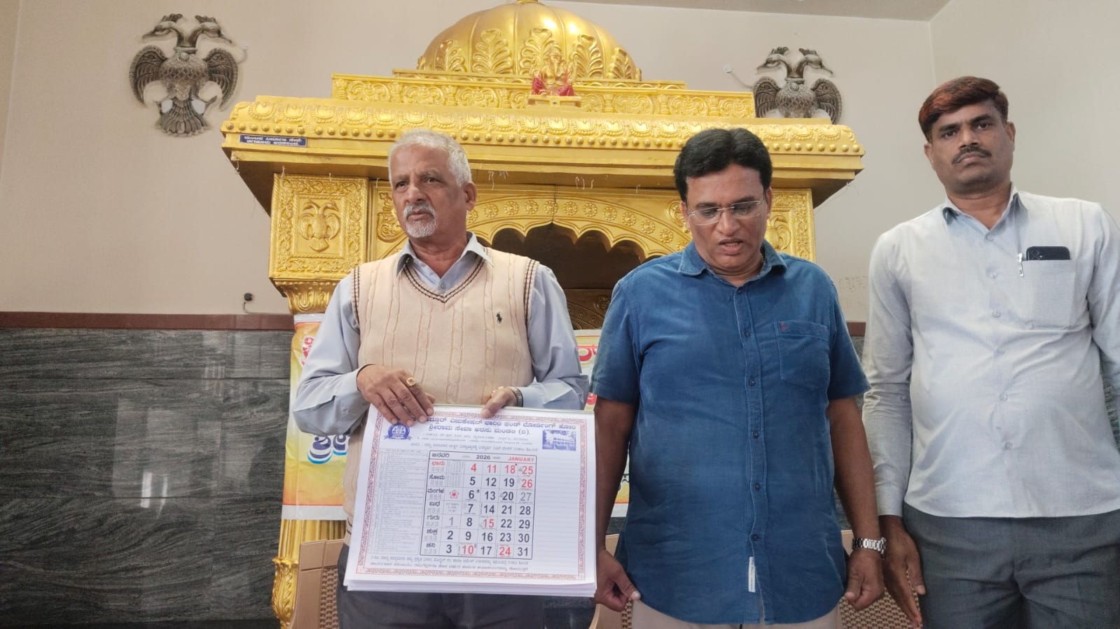 | The Calendar Inauguration Ceremony was formally held on 25th December 2025 at Sri Rama Seva Ursu Mandali. The 2026 calendar was ceremoniously released by Mr. Paneesh Kumar ( Legal Advisor) and Mr. Sundar Raj Urs (President) On this auspicious occasion, they conveyed their warm greetings and best wishes to all members for the New Calendar Year 2026. |